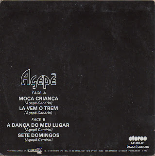 Lado A: 1 – Moça criança (Agepê – Canário) / 2 – Lá vem o trem (Agepê – Canário)