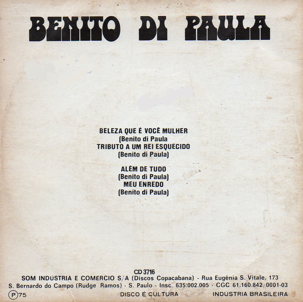 Lado A: 1 – Beleza que é você mulher (Benito de Paula) / 2 – Tributo a um rei esquecido (Benito Di Paula)