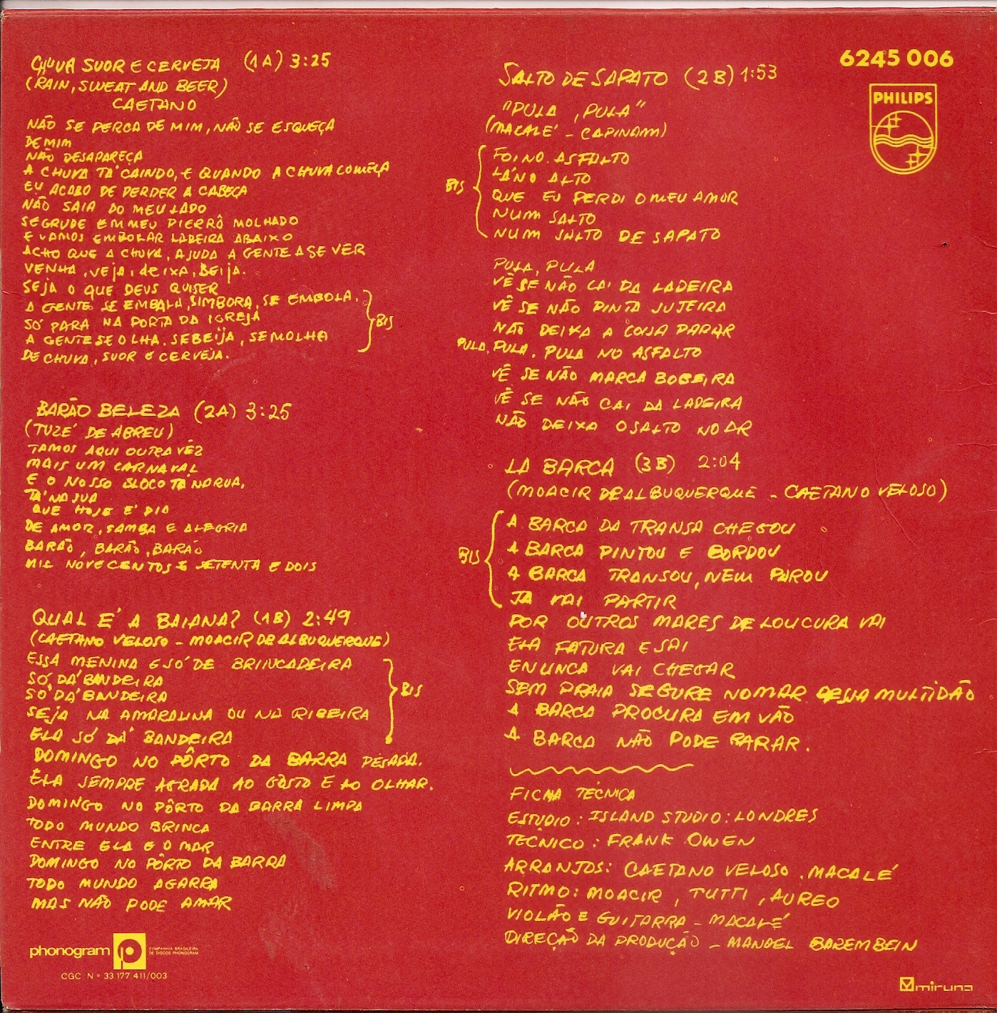 Lado B – Qual é, baiana! (Caetano Veloso / Moacir de Albuquerque) / Pula, pula (Macalé / Capinan) / La barca (Caetano Veloso / Moacir de Albuquerque)