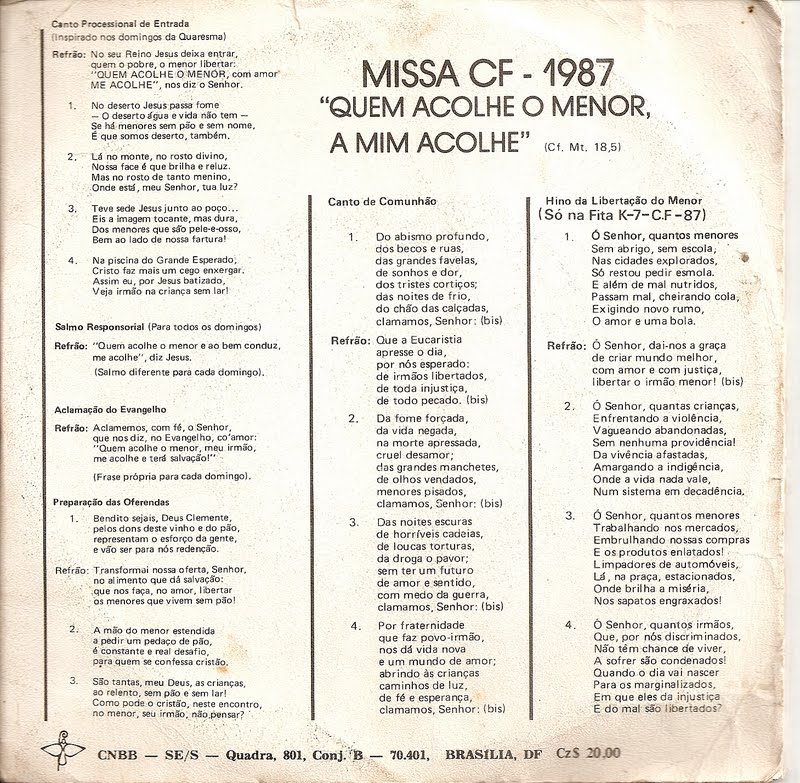 Título: Campanha da Fraternidade de 1987 “Quem acolhe o menor, a mim acolhe”