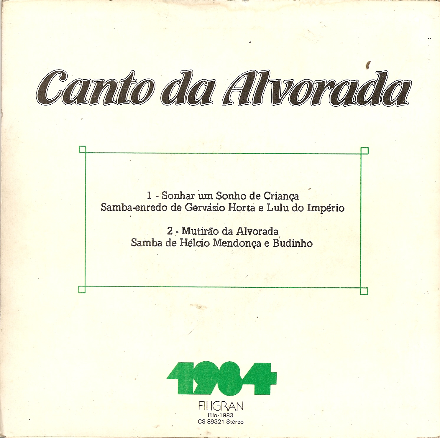 Lado A – Sonhar um sonho de criança (Samba enredo de Gervásio Horta e Lulu do Império)