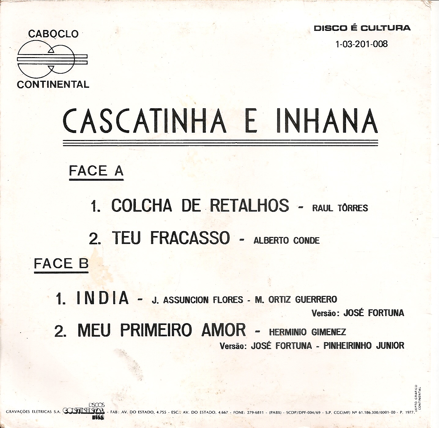 Gravadora/Fabricante/Selo: Caboclo Continental