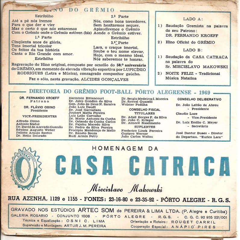 Lado A – Hino do Grêmio cantado (Lupiscínio Rodrigues) / Sou gremista (Alfredo Custódio)