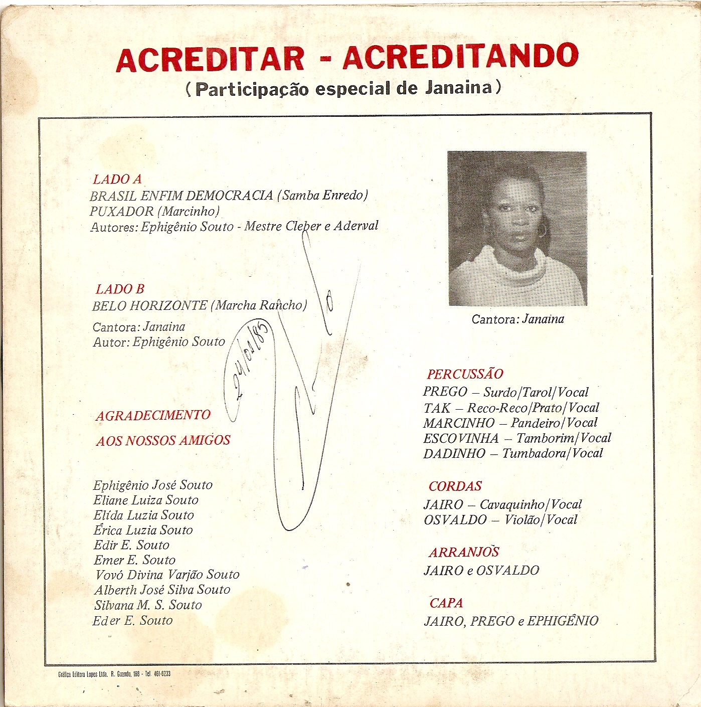 Lado A – Brasil enfim democracia (Ephigênio Souto/ Mestre Cleber/ Aderval)
