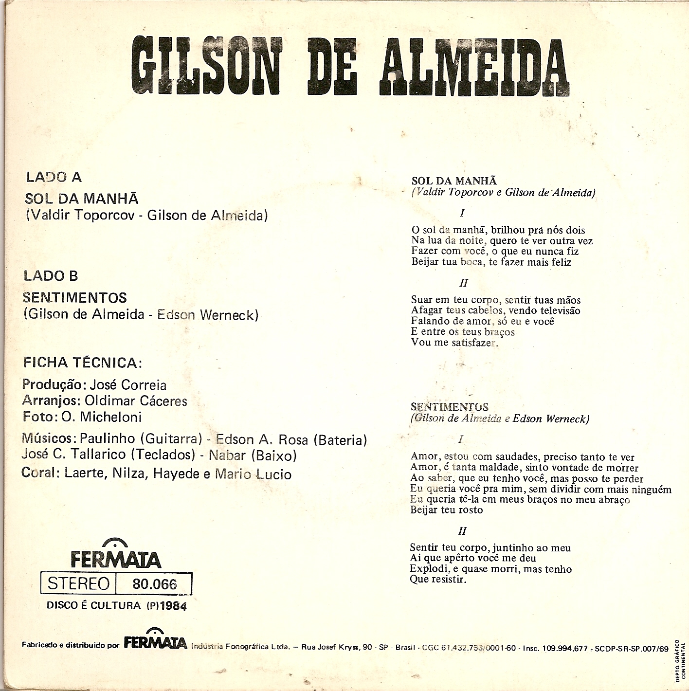 Lado A – Sol da Manhã (Valdir Toporcov / Gilson de Almeida)