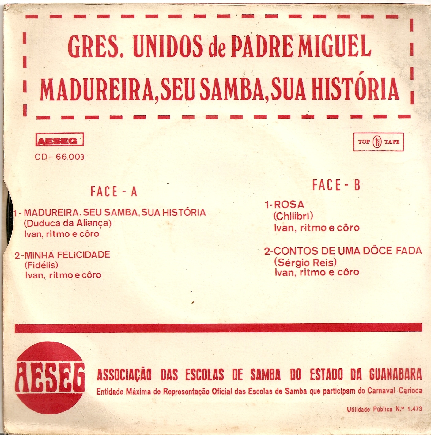 Lado A – Madureira, seu samba, sua história (Duduca da Aliança)/ Minha felicidade (Fidélis)