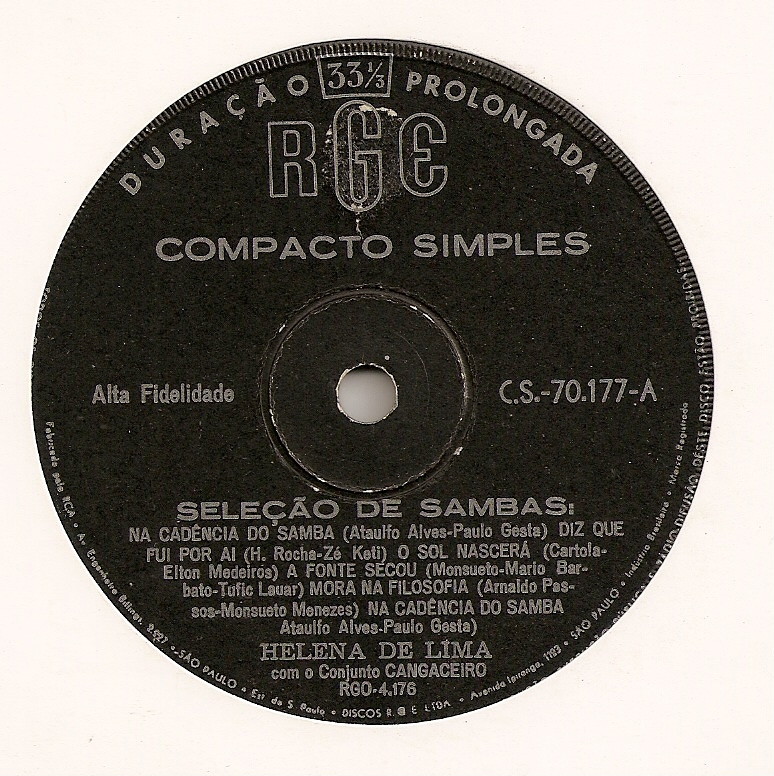 Lado A – Seleção de sambas: Na cadência do samba (Ataulfo Alves / Paulo Gesta)/ Diz que fui por aí (H. Rocha/ Zé Kéti)/ O sol nascerá ( Cartola/ Elton Medeiros)/ A fonte secou (monsueto/ Mario Barbato/ Tufic Lauar)/ Mora na filosofia (Arnaldo Passos/ Mosueto Menezes)/ Na cedência do samba (Ataulfo Alves / Paulo Gesta)