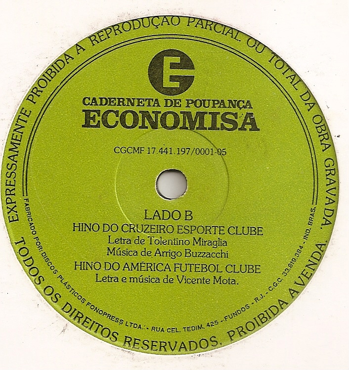 Lado B – Hino do Cruzeiro Esporte Clube (Letra: Tolentino Miraglia / Música: Arrigo Buzzacchi) / Hino do América Futebol Clube (Letra e música: Vicente Mota)