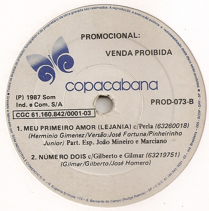 Lado B – Meu primeiro amor (versão : José Fortuna/ Pinheirinho / Junior) / Número dois ( Gilmar / Gilberto / José Homero)