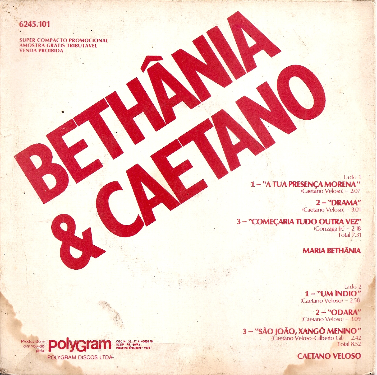 Lado A – A tua presença (Caetano Veloso) / Drama (Caetano Veloso) / Começaria tudo outra vez (Gonzaga Jr.)
