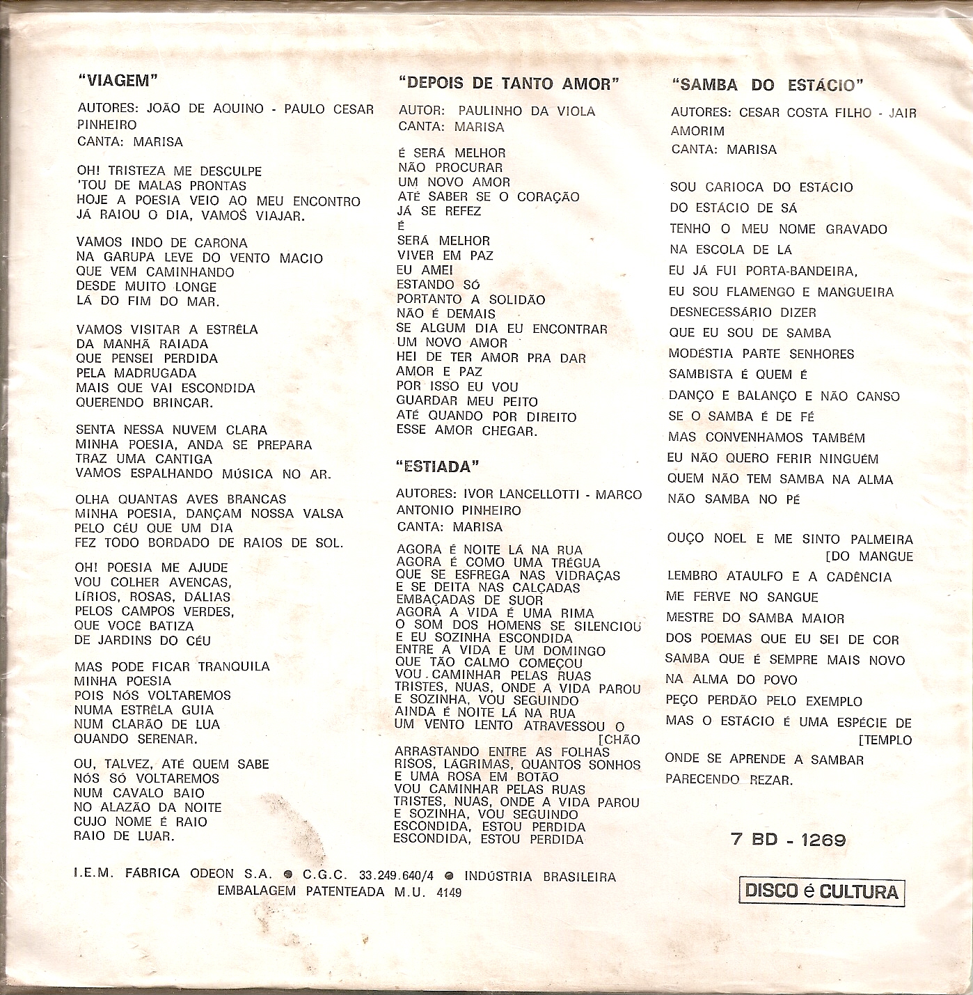 Lado A – Viagem (João Aquino / Paulo César Pinheiro) / Depois de tanto amor (Paulinho da Viola)