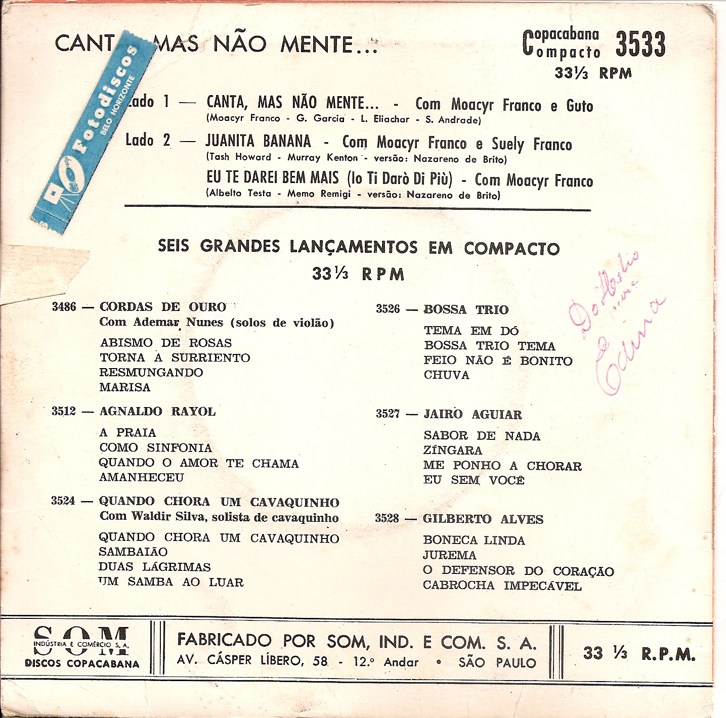 Lado A – Canta mas não mente… (Moacyr Franco / G.Garcia / L.Eliachar / S.Andrade)
