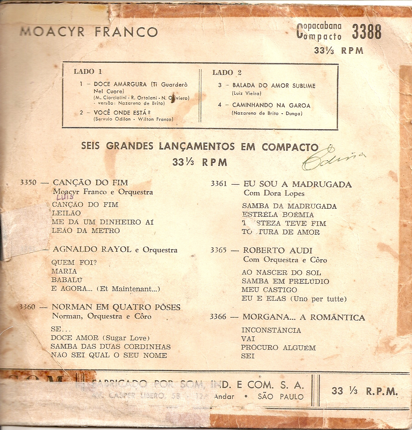 Lado A – Doce amargura (versão: Nazareno de Brito) / Você onde está? (Servulo Odilon / Wilton Franco)