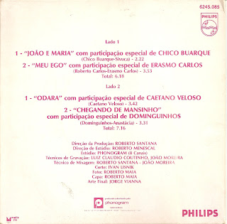 Lado A – João e Maria ( Chico Buarque / Sivuca) / Meu ego ( Roberto Carlos / Erasmo Carlos)
