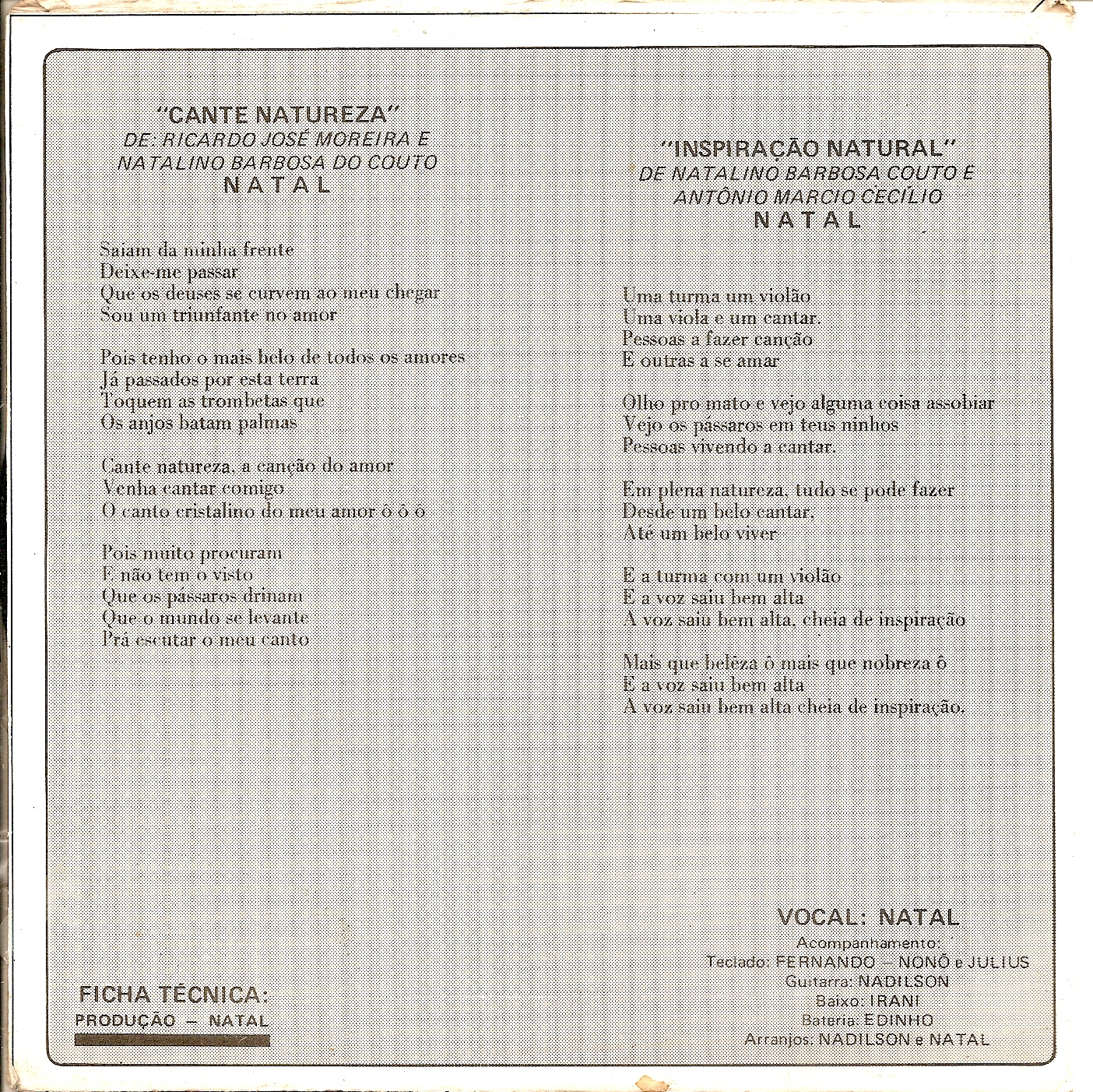 Lado A – Canta natureza (Ricardo José Moreira / Natal)