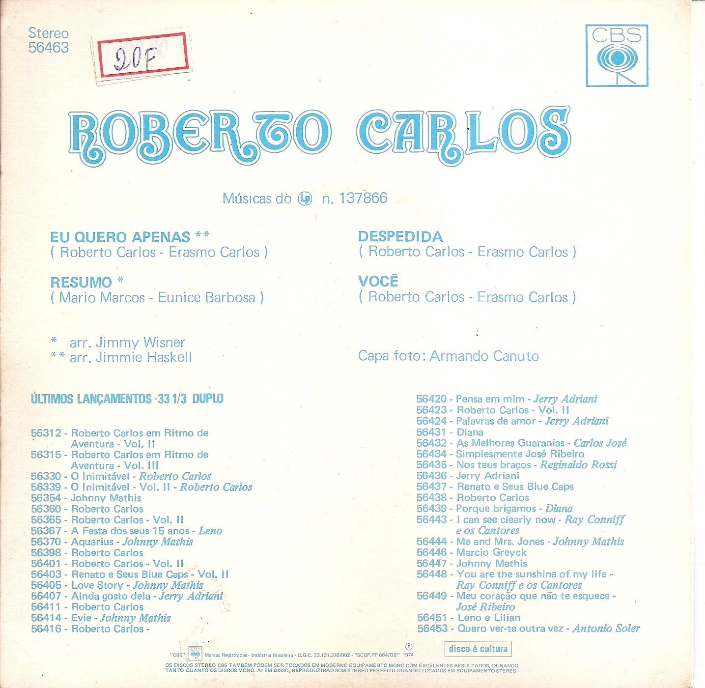 Lado A – Eu quero apenas (Roberto Carlos / Erasmo Carlos) / Resumo (Mario Marcos / Eunice Barbosa)