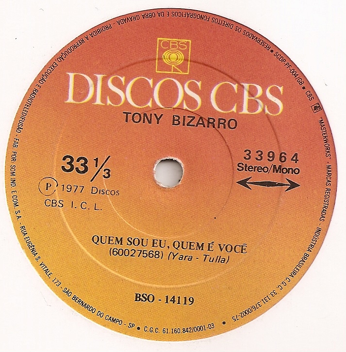 Gravadora/Fabricante/Selo:  CBS