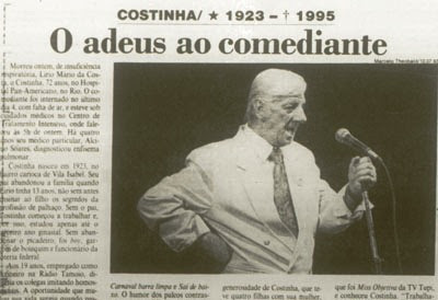 Mas a televisão, se é um excelente meio para os até então secundários em chanchadas. Por ele, Costinha consegue se tornar uma personalidade conhecida em todo território nacional, levando milhares de brasileiros a darem muitas risadas.